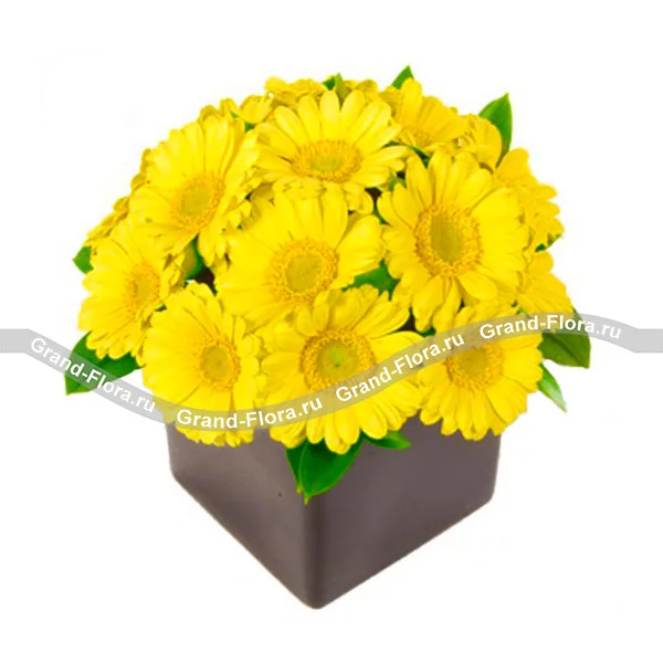 Глядя на композицию с нежно-желтыми герберами, поневоле возникают только самые позитивные ассоциации. Недаром «Солнечные сны» являются наиболее популярными среди подарков на любой случай жизни, ведь многим из нас так хочется созерцать в унылый серый день что-то яркое и бодрящее. Представьте, что за окном пасмурно или льет ливень, а вы сейчас работаете в офисе. Погода навевает зевоту, а начальник постоянно спрашивает о выполнении плана. Именно в такие моменты так хочется погрузиться в «Солнечные сны».