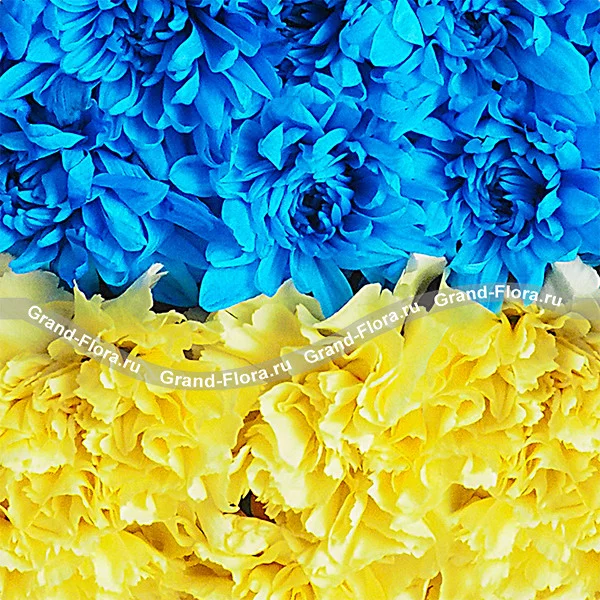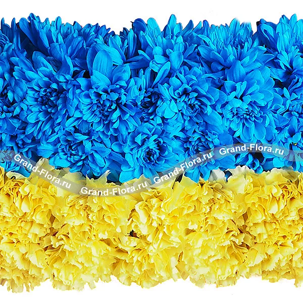 Украина - композиция в виде флага из гвоздик и хризантем
