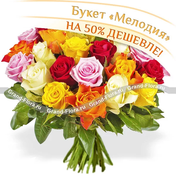 Мелодия - букет из разноцветных роз